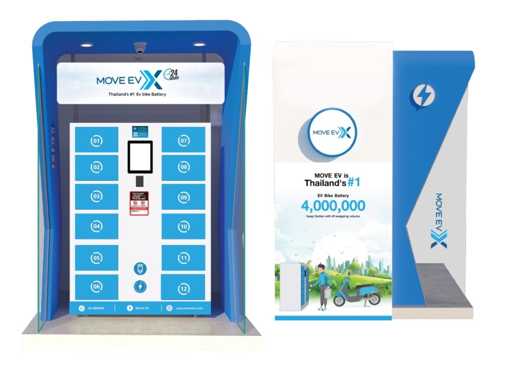 จากสถิติการใช้งานดังกล่าว จึงเป็นที่มาของรูปแบบธุรกิจ “MOVE EV X” เพิ่มโอกาส เพิ่มรายได้ให้ผู้สนใจเป็นตัวแทนสถานีเปลี่ยนแบตเตอรี่รถมอเตอร์ไซค์ไฟฟ้า โดยมีรูปแบบธุรกิจให้เลือก 2 แบบแบบแรกผู้ประกอบการมีความพร้อมทั้ง เงินลงทุนและพื้นที่ (เฉพาะในกรุงเทพฯและปริมณฑล) โดยธุรกิจสามารถเริ่มต้นด้วยพื้นที่เพียง 8 ตารางเมตร เท่านั้น