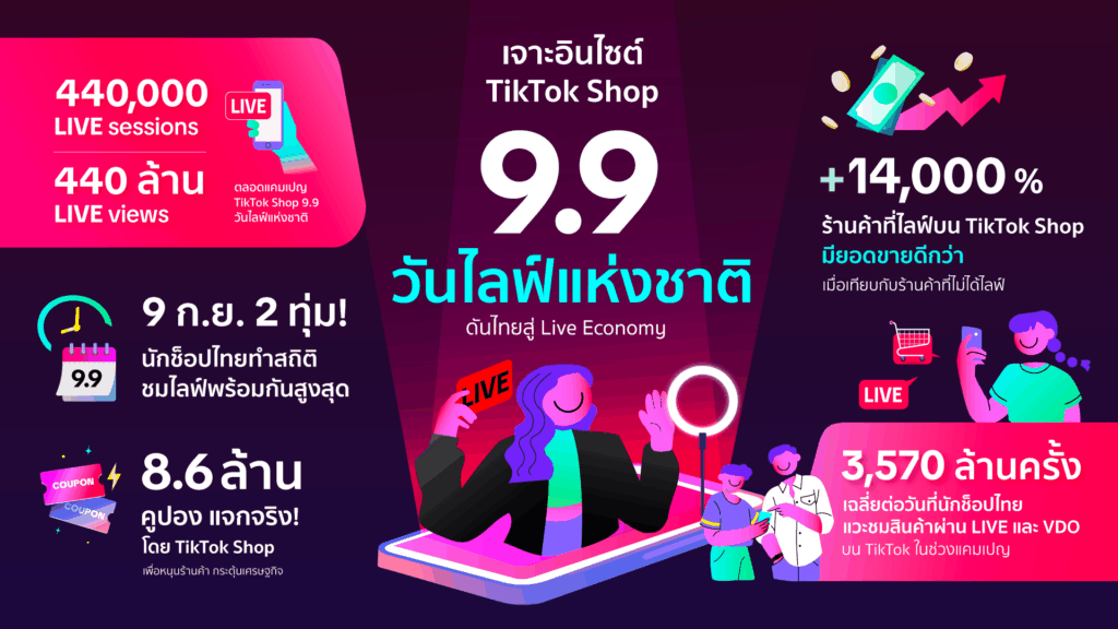 • แคมเปญ TikTok Shop 9.9 ดึงดูดยอดชมไลฟ์มากกว่า 440 ล้านวิว เปลี่ยนการมีส่วนร่วมในไลฟ์เป็นยอดขายที่วัดผลได้