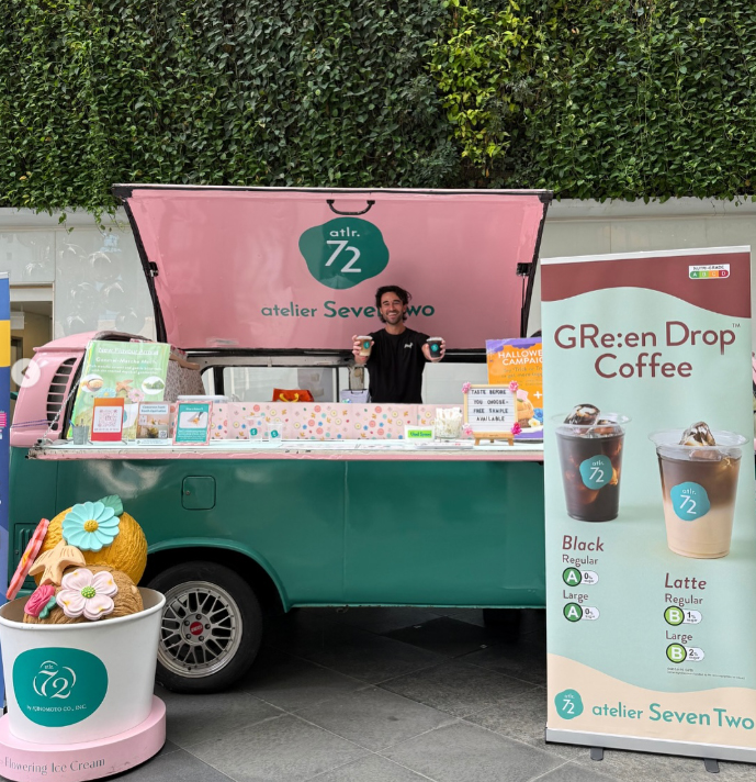 ผลิตภัณฑ์อาหารสีเขียวที่มาพร้อมกับการเปิดตัวบริษัทใหม่คือ แซนด์วิชไอศกรีมกับขนมไหว้พระจันทร์ ซึ่งทั้งสองผลิตภัณฑ์ใช้ “ผงโปรตีนโซลีน” แทนที่นมวัว ล่าสุด Atlr.72 เปิดตัวเครื่องดื่มกาแฟ 2 เมนูในชื่อซีรี่ส์ “จีรี:เอ็น ดร็อป คอฟฟี่” (GRe:en Drop Coffee) เมื่อปลายเดือนตุลาคมที่ผ่านมานี้เอง ณ ศูนย์การเงินโอเชี่ยน ใจกลางเมืองสิงคโปร์