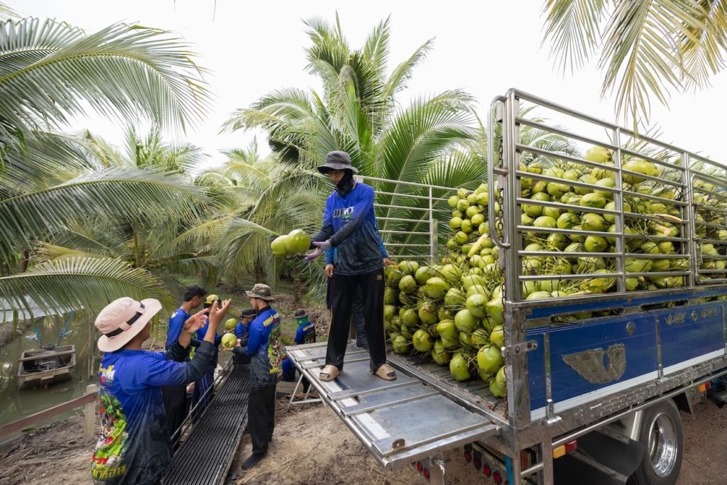 ทุกขั้นตอนถูกควบคุมคุณภาพอย่างละเอียด โดยมะพร้าวที่ผ่านการคัดเลือกต้องมีขนาดเส้นผ่าศูนย์กลางลูก เฉลี่ย 10 ซม. ตามสเปกที่กำหนด ก่อนส่งต่อเข้าสู่กระบวนการผลิตของโรงแพ็กโคโค่ เฟรส เพื่อแปรรูปเป็นมะพร้าวพร้อมทานสำหรับวางจำหน่ายในร้านเซเว่น อีเลฟเว่น กระบวนการนี้ไม่เพียงยกระดับคุณภาพสินค้า แต่ยังเป็นการ สร้างงาน สร้างอาชีพที่มั่นคงให้คนในชุมชนอย่างเป็นรูปธรรม