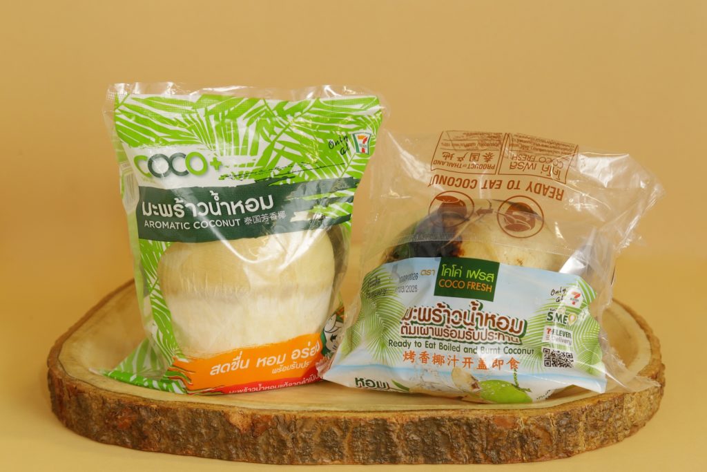 ผลจากการพัฒนาสินค้า ทำให้ผู้บริโภคสามารถเลือกอร่อยกับเมนูจากมะพร้าวได้อย่างหลากหลายภายในร้านเซเว่นฯ สำหรับคนที่ต้องการความสดชื่นระหว่างวัน มีสินค้าอย่างมะพร้าวน้ำหอมสด ทั้งแบบมะพร้าวควั่น และมะพร้าวเจีย ผ่านกระบวนการผลิตอย่างพิถีพิถัน เพิ่มความสะดวกในการเปิดทานด้วยเทคนิคการเจาะ ที่นำมาปรับให้สะดวกต่อการรับประทาน สามารถแช่เย็นพร้อมดื่มได้ทันที โดยมีให้เลือกทั้ง มะพร้าวน้ำหอมสด และมะพร้าวน้ำหอมต้มเผา