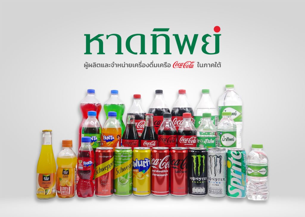 บริษัท หาดทิพย์ จำกัด (มหาชน) เป็นผู้ผลิตและจำหน่ายผลิตภัณฑ์เครื่องดื่มในเครือ “โคคา-โคล่า” ในพื้นที่ 14 จังหวัดภาคใต้ของประเทศไทย จาก The Coca-Cola Company (สหรัฐอเมริกา) มีผลิตภัณฑ์ในพอร์ตโฟลิโอ ประกอบไปด้วย “โค้ก”, “แฟนต้า”, “สไปรท์”, “ชเวปส์”, “เอแอนด์ดับบลิว” รูทเบียร์ รวมถึงน้ำส้ม “มินิทเมด สแปลช”, “มินิทเมด พัลพิ”, ชา “ฟิวซ์ที” น้ำดื่ม “น้ำทิพย์” และ “มอนสเตอร์ เอ็นเนอร์จี้”