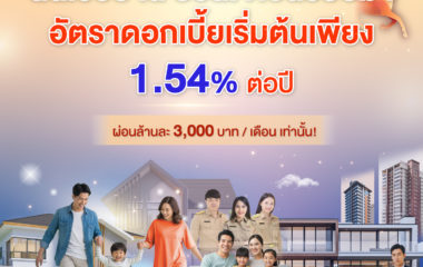 ธอส. ชู 5 สินเชื่อเด่น หนุนคนไทยมีบ้านต้อนรับปีม้า ดอกเบี้ยเริ่มต้นเพียง 1.54% ต่อปี ผ่อนเพียงล้านละ 3,000 บาทเท่านั้น!