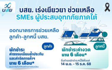 บสย. ออกมาตรการด่วน เร่งเยียวยา SMEs ผู้ประสบอุทกภัยภาคใต้ พักชำระค่าธรรมเนียม-ค่างวด นาน 6 เดือน ช่วย “ลูกค้า-ลูกหนี้” พลิกฟื้นธุรกิจ